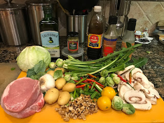 The following dish was quick to make and tasted very good, but I have to say that it would have been better without the pork. I don't like boneless pork chops but thought they would do okay if thinly sliced and flash cooked. Not really. They were a little tough. Next time, I'll just make it a vegan dish or add some chicken or shrimp.